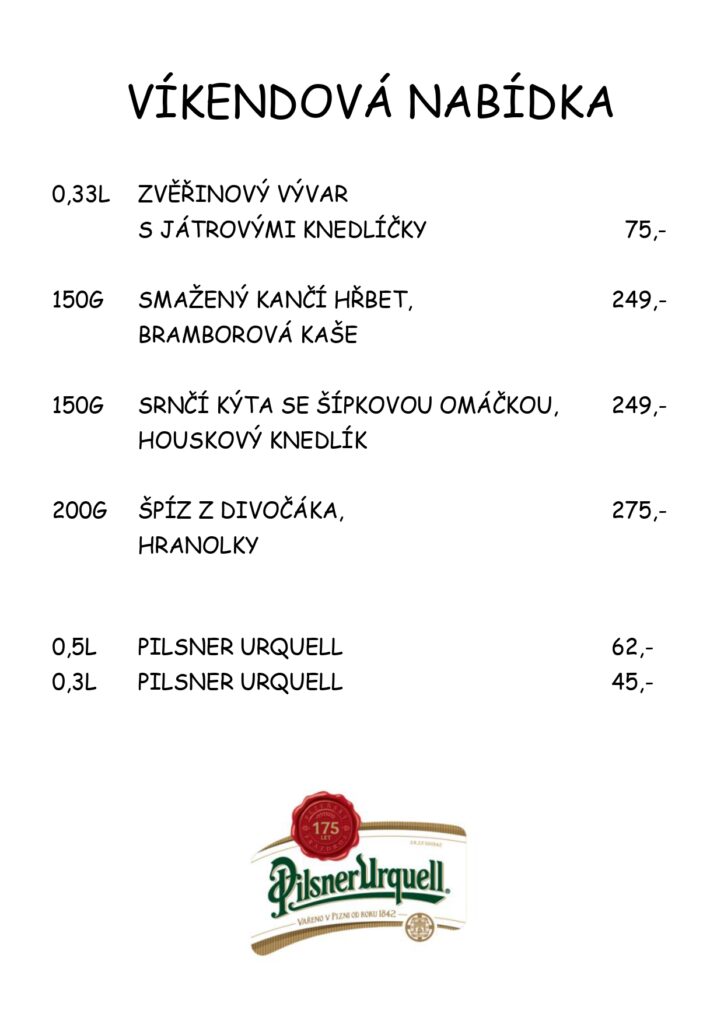 | 0,5 l | Pilsner Urquell 12 % | 49 Kč |