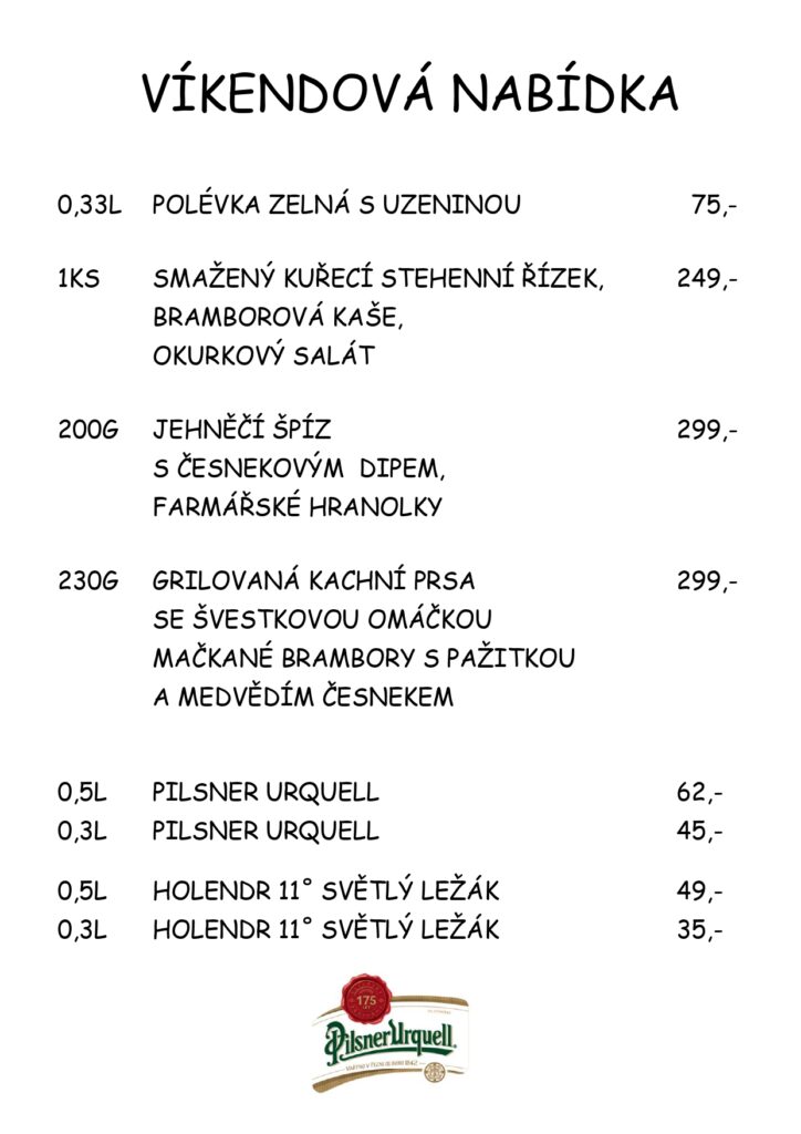 | 0,5 l | Pilsner Urquell 12 % | 49 Kč |